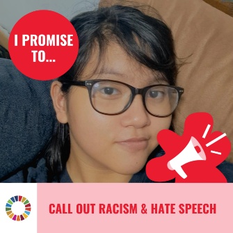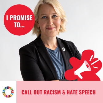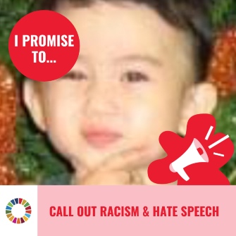 I promise to call out racism and work to stamp out hate speech while promoting equality and human dignity. Join me and make your promise to help achieve the #GlobalGoals and create a better world for everyone.